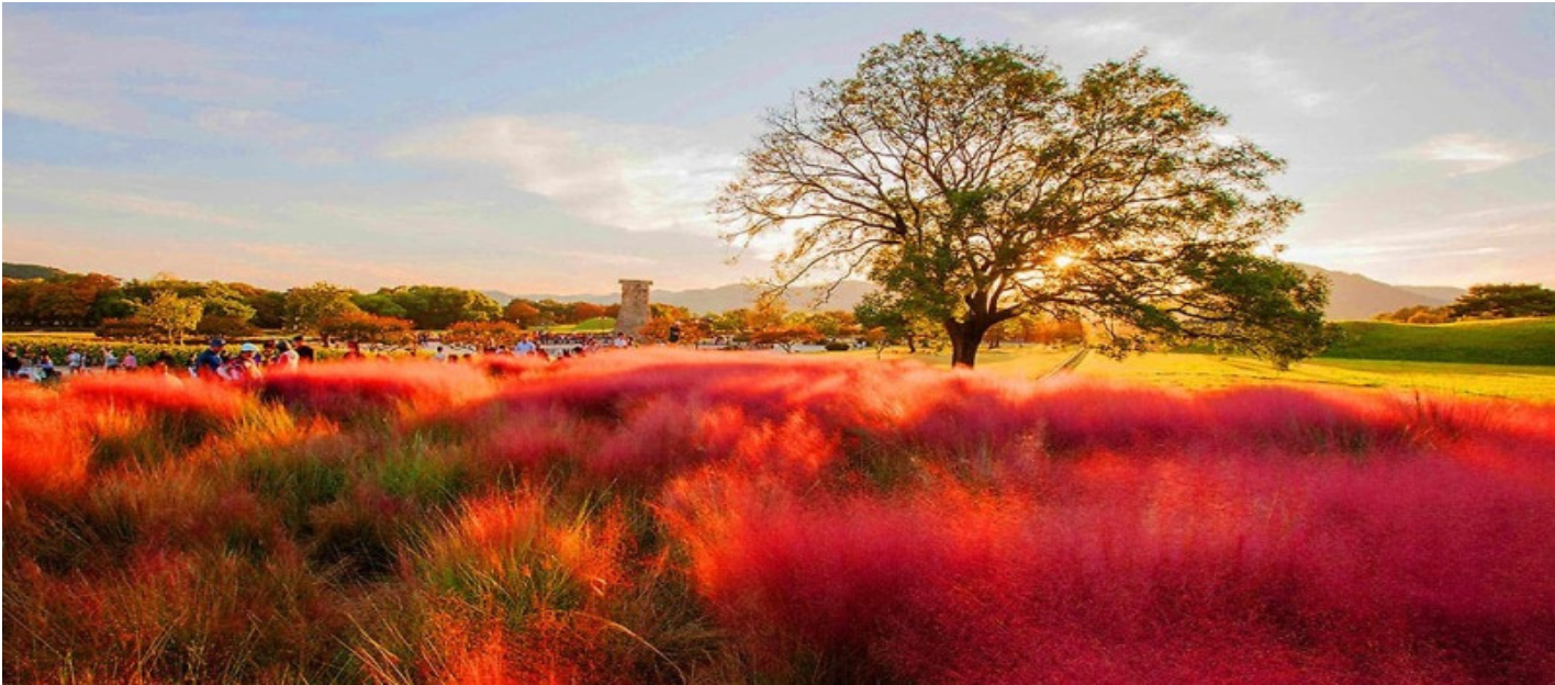 대릉원의 가을은 ‘곡선’으로 기억됩니다. 잔디 능선이 만든 완만한 선과 단풍잎의 붉은 번짐, 하늘의 공백이 만나면 유려한 미니멀리즘이 완성되지요. 오전 10시에서 11시 사이, 측광이 부드러울 때가 베스트입니다. 황리단길로 이어지는 길목에서는 은행잎이 카펫처럼 쌓이는 골목을 꼭 걸어보세요. 상점 문 앞 화분과 벤치, 노란 잎의 대비가 생각보다 영화적입니다. 단풍 시즌에 경주 여행을 검색하는 분들이 몰리는 시간대라도, 골목 한 칸만 비켜서면 조용한 구도가 열립니다.