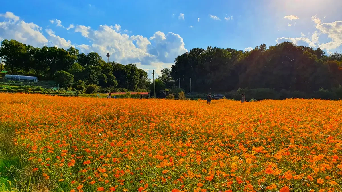 포토존 표지판이 있는 구역은 대기열이 생기기도 하는데, 조금만 벗어나면 비슷한 구도와 색감을 얻을 수 있는 ‘세컨드 스폿’이 꼭 있습니다. 특히 산책로와 꽃밭이 만나는 S자 코너, 나무 그늘이 드리운 초입, 벤치 근처의 낮은 울타리 옆은 사람이 적으면서도 화면이 깔끔하게 떨어집니다. 코스모스 구간에서는 바람 방향을 등지게 서서 꽃대가 한쪽으로 기울 때 셔터를 누르면, 배경 전체가 흐르는 듯한 느낌을 살릴 수 있습니다.