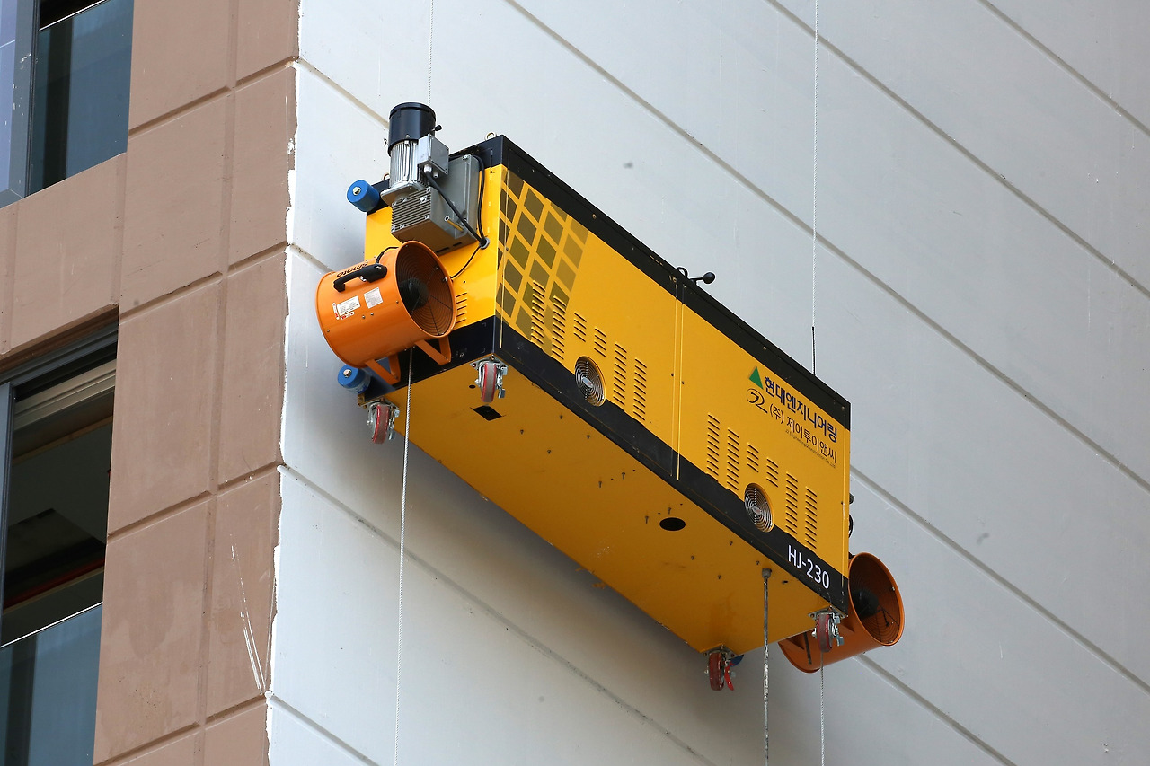 호반건설이 인천 서구 ‘호반써밋 인천검단 AB19블록’ 현장에서 실증한 외벽도장로봇 ‘롤롯(Rollot)’은 와이어를 따라 수직으로 이동하며, 원격으로 롤러 도장을 수행할 수 있는 최신 스마트 건설장비입니다. 이 로봇은 분당 최대 10m의 표면을 도장할 수 있어, 기존 인력 작업 대비 약 2.5배의 효율을 보이고 있습니다. 특히, 고층 외벽 작업 환경이나 악천후에도 안정적으로 페인트칠을 할 수 있어 시공 품질도 크게 높아졌습니다.