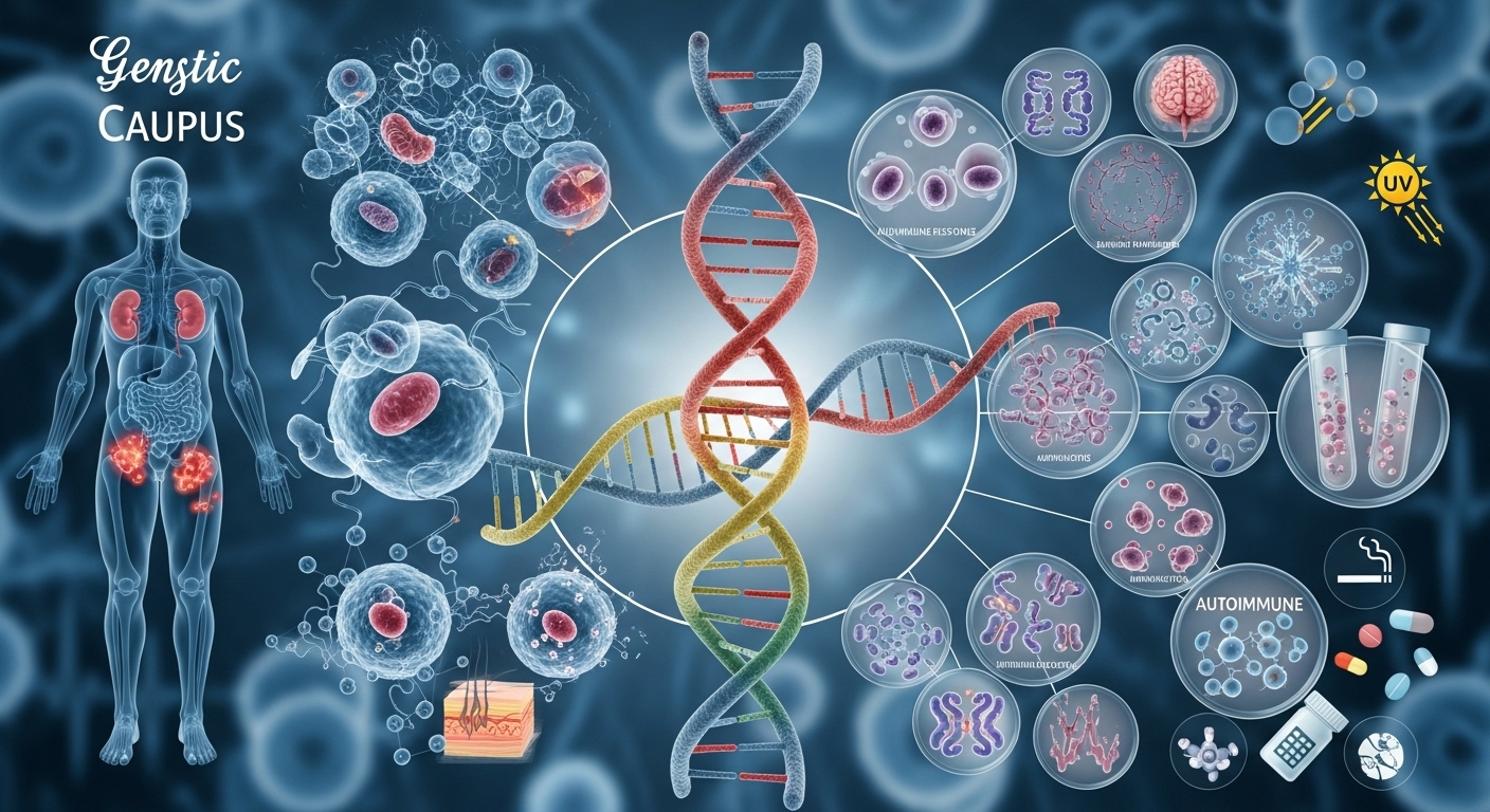 🧬루프스병의 정확한 원인은 아직 완전히 밝혀지지 않았지만, 여러 요인들이 복합적으로 작용한다고 알려져 있습니다. 유전적인 요소와 호르몬, 환경적 요인 등이 복합적으로 작용하여 발생한다고 알려져 있다.