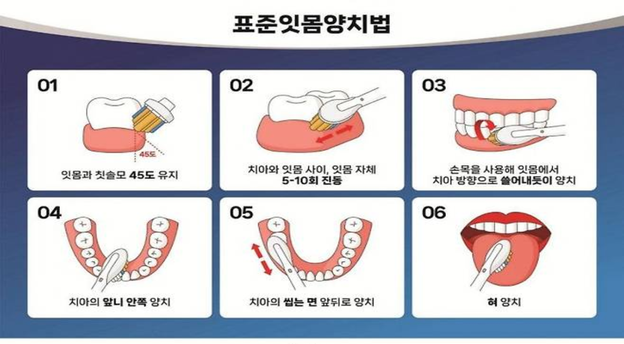 건치왕들이 꼭 지키는 비밀은 크게 네 가지로 정리할 수 있습니다. 첫째, 칫솔을 너무 세게 누르지 않고 부드럽게 닦아 치아와 잇몸의 건강을 지킵니다. 둘째, 칫솔모가 닿기 힘든 어금니 뒤쪽과 치아 사이 공간까지 꼼꼼히 닦는 것이 필수입니다. 셋째, 칫솔은 45도 각도로 잇몸 선을 따라 문지르듯 닦으며 플라크가 쌓이는 부분을 집중 케어합니다. 넷째, 적당한 양의 불소 함유 치약을 사용해 치아 부식을 예방합니다.