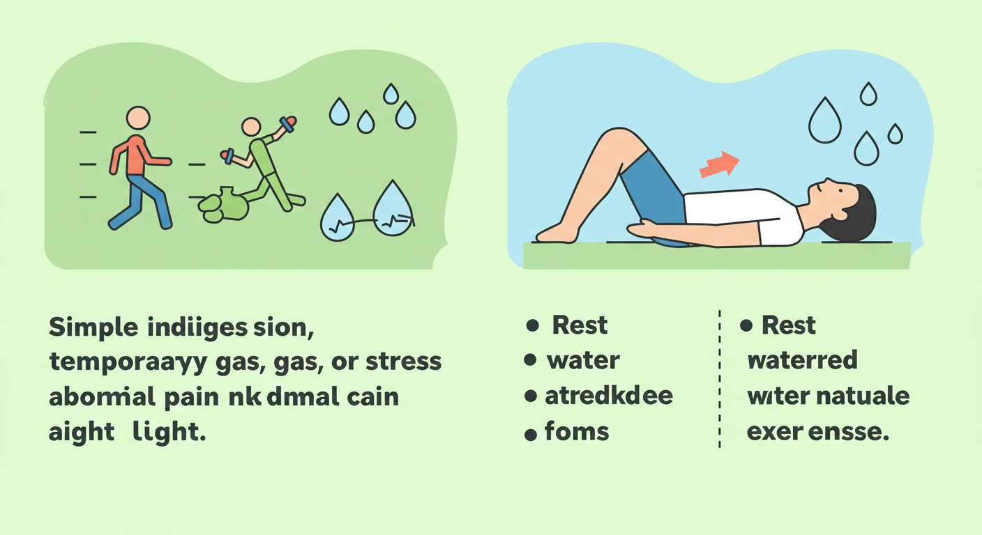 단순 소화 장애나 일시적인 가스, 스트레스성 복통은 휴식, 수분 섭취, 가벼운 운동 등으로 자연 치유될 수 있습니다.