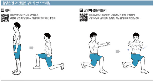 세 번째로 런지 운동도 효과적입니다. 균형 감각을 키워주면서 혈당 관리를 돕는 운동으로, 공간이 좁은 집에서도 충분히 실행할 수 있습니다.
