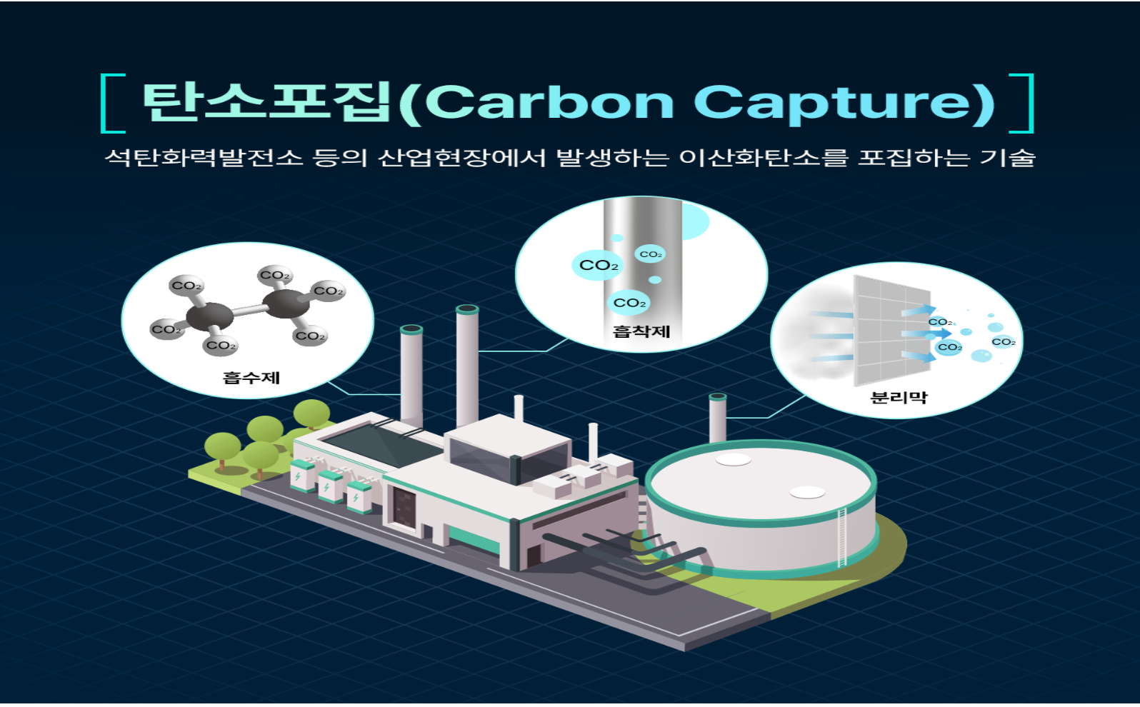 첫째, 배출원에서 이산화탄소를 뽑아내는 포집(Capture)입니다. 연소 전·후 포집, 산소 연소(Oxy-fuel) 등 방식에 따라 성능과 비용 구조가 달라집니다.