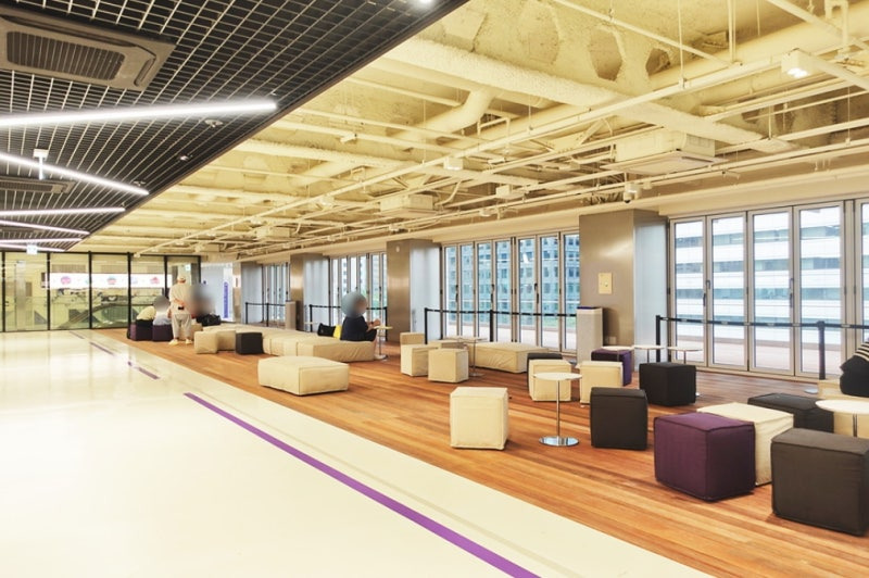 열정적으로 춤추고 사진을 찍었다면 잠시 쉬어갈 시간이 필요하겠죠? 하이커 그라운드 5층은 여행자들을 위한 완벽한 쉼터, '하이커 라운지'로 꾸며져 있습니다. 이곳의 하이라이트는 단연 청계천이 한눈에 내려다보이는 야외 테라스입니다. 도심 한복판에서 물소리와 바람을 느끼며 여유를 즐길 수 있어, 외국인 관광객들 사이에서는 '서울의 숨은 뷰 맛집'으로 통합니다.