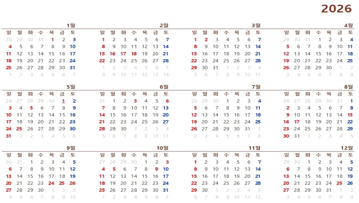 그래도 전반적으로 보면 2026년은 연휴의 질이 상당히 좋은 편이에요. 짧게 쉬는 날보다 길게 붙어서 쉬는 날이 많다는 건 직장인들에게는 정말 큰 축복이잖아요. 해외여행 가기에도, 푹 쉬기에도, 자기계발하기에도 딱 좋은 연휴 배치예요.