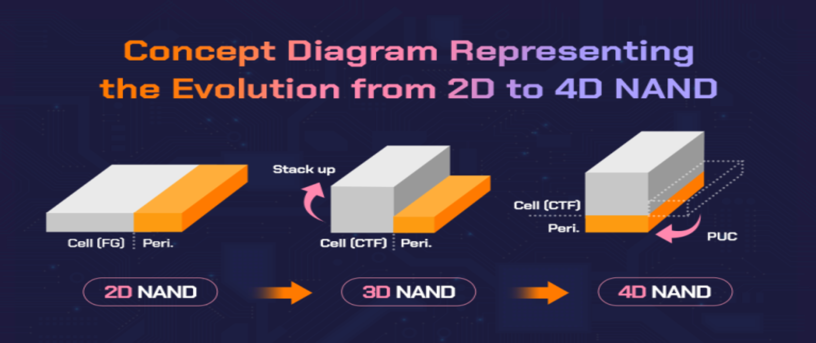 400단 낸드부터는 저장용 셀(셀 블록)과 회로 구동용 페리페럴 영역을 별도의 웨이퍼에 구현하는 이원화 설계가 도입되었습니다.